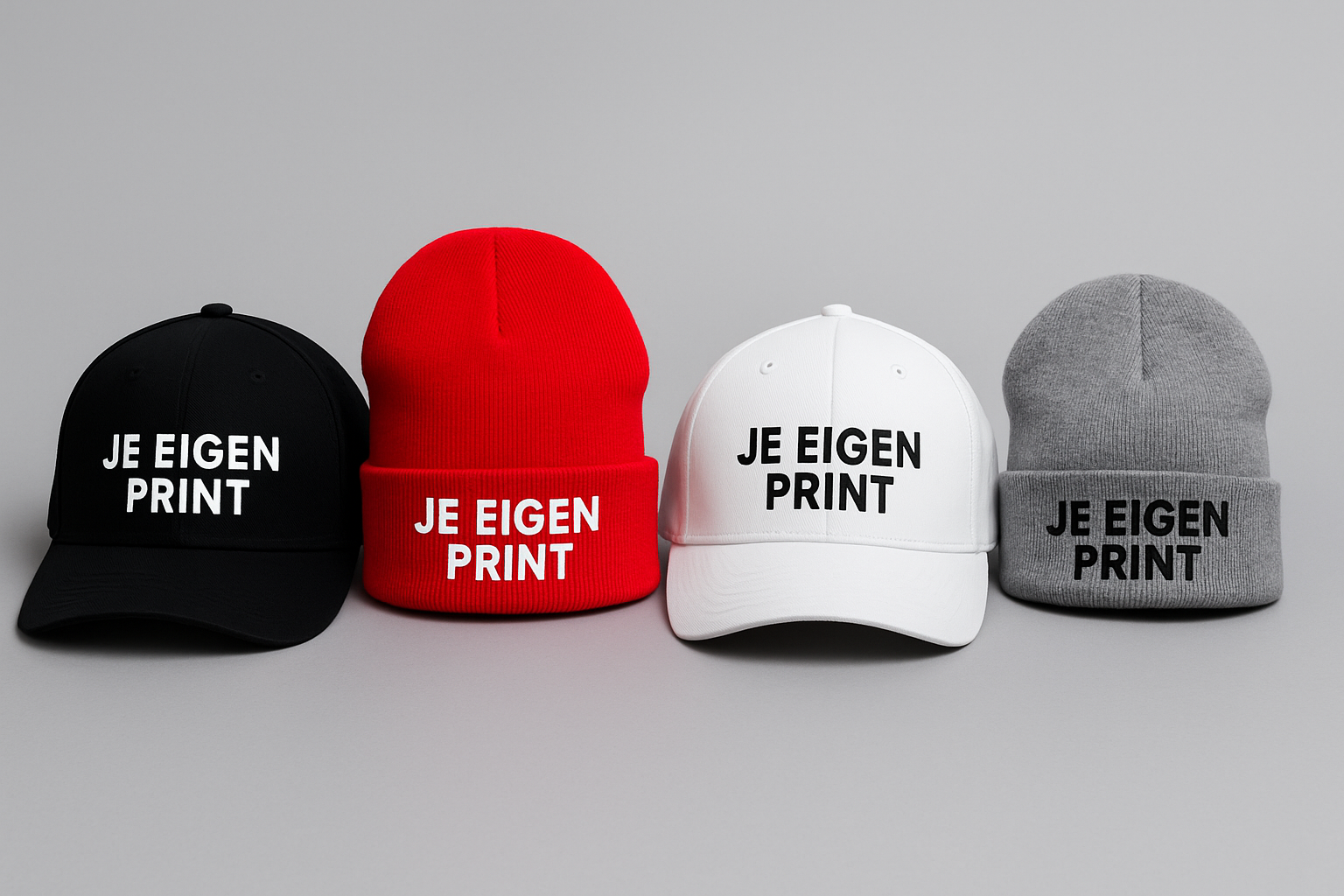 Maak jouw look compleet met een bedrukt petje, beanie of cap. Ideaal voor promoties, sportteams of als stijlvol mode-accessoire.